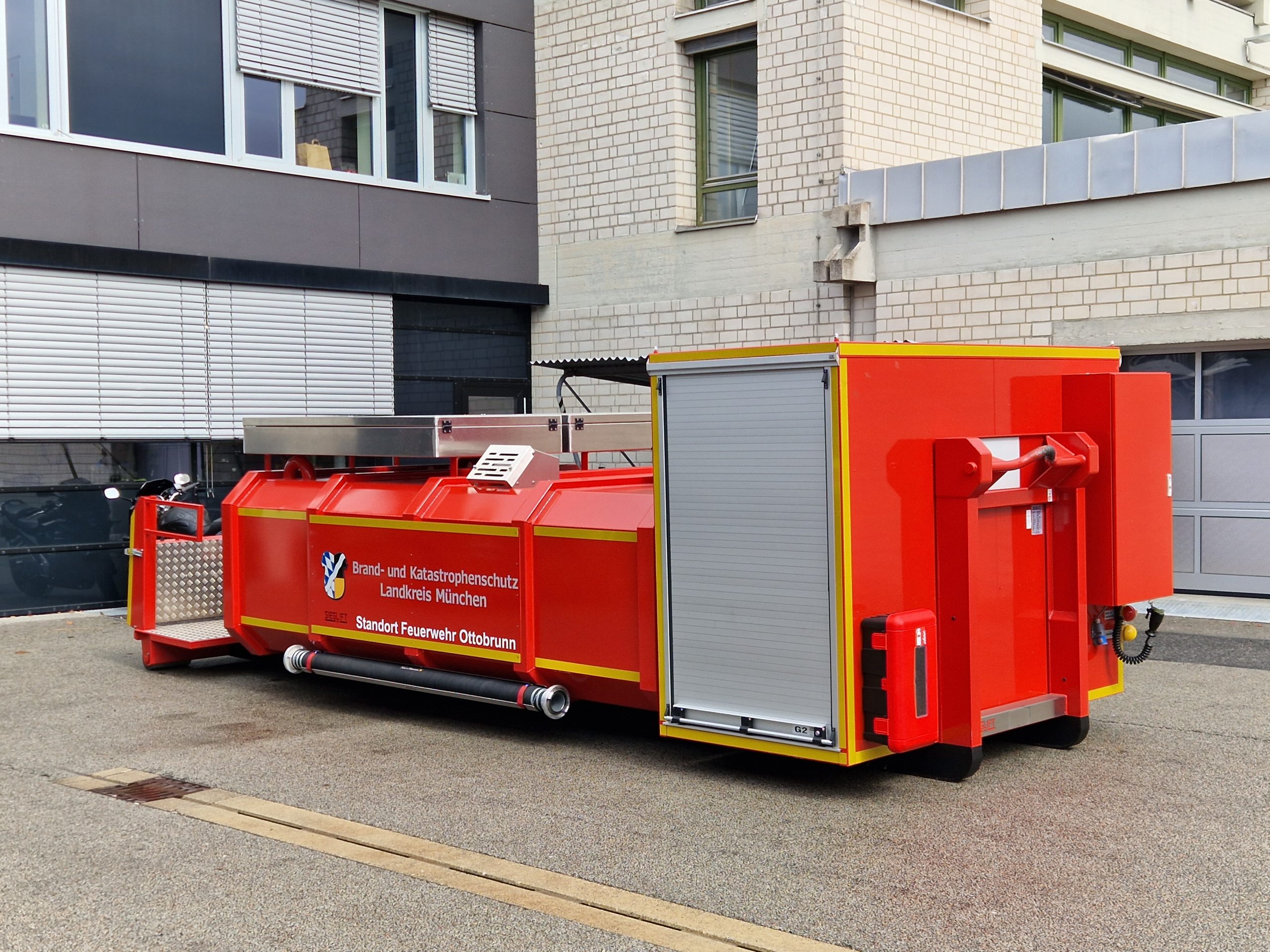 Den Abrollbehälter Wasser hat der Landkreis München beschafft und mit einem Wechselladerfahrzeug 2023 bei der FF Ottobrunn stationiert. Bei Großbränden stellt der Abrollbehälter Wasser 10.000 Liter Löschwasser zur Verfügung. Dieser Abrollbehälter darf auch von der FF Ottobrunn für ihre Einsatzaufgaben genutzt werden.
