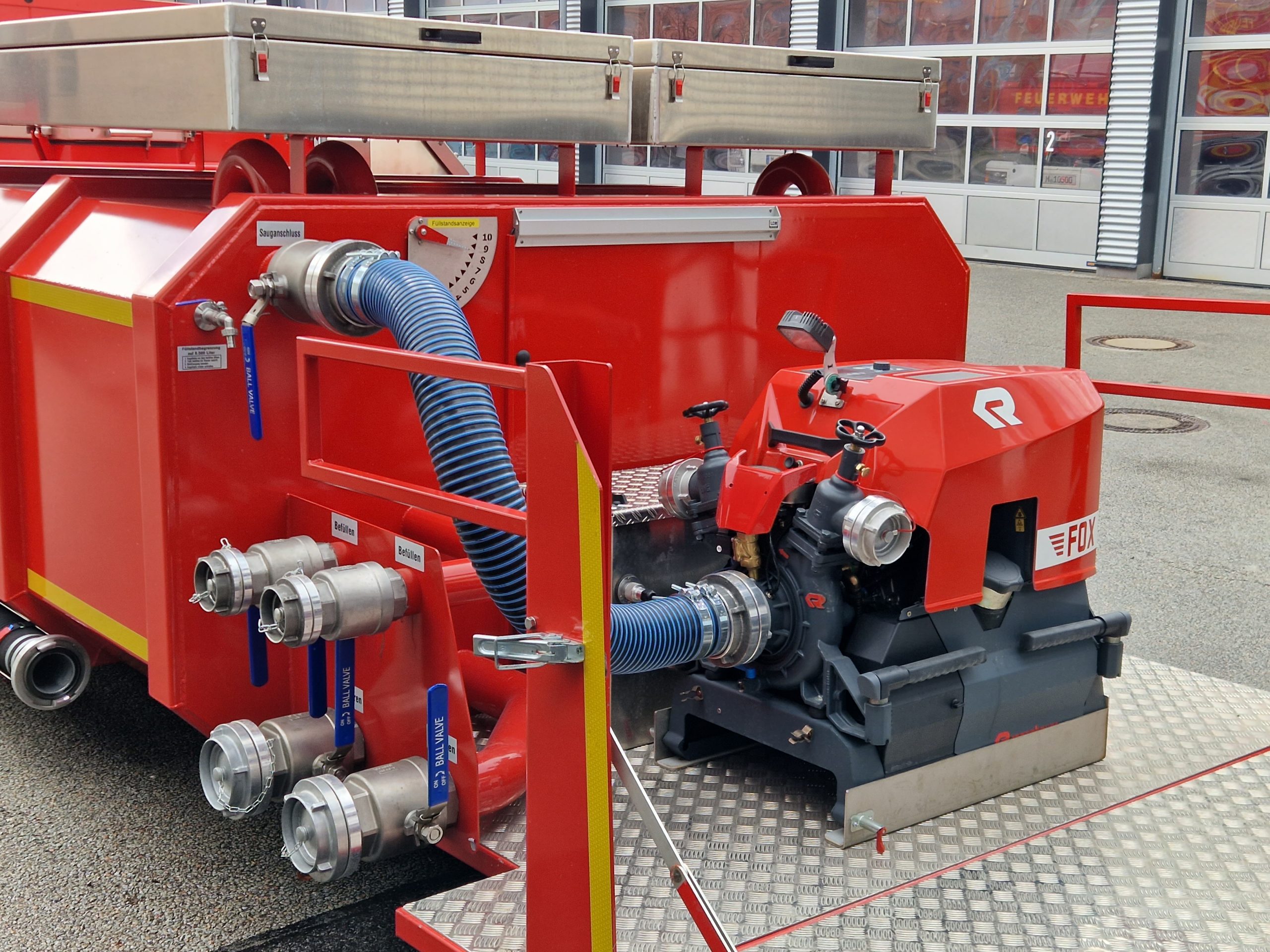 Das MLF ist auf einem FUSO Canter Fahrgestell mit einem zulässigen Gesamtgewicht von 7,49t aufgebaut. Dies bietet uns die Möglichkeit, Maschinisten auch ohne LKW-Schein (C1, C, CE) mit einem sogenannten Feuerwehrführerschein fahren zu lassen.