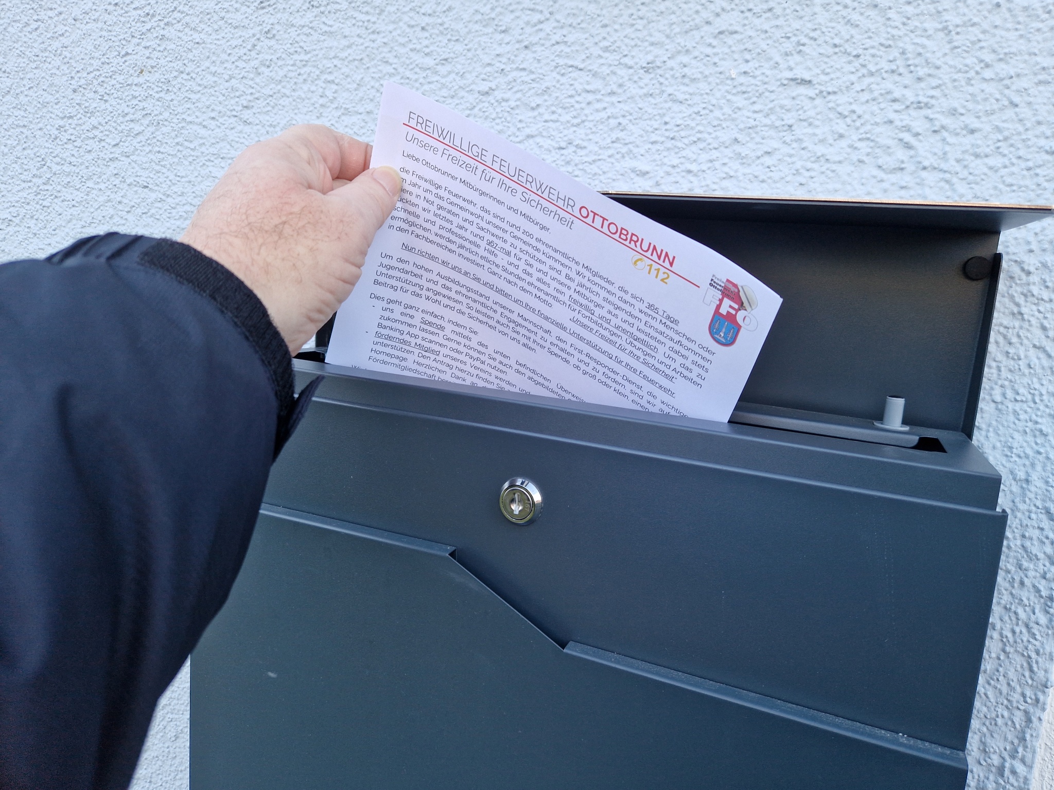 Die Mitglieder der Ottobrunner Feuerwehr stecken seit Mitte Dezember die Spendenbriefe in jeden Briefkasten. Die Kameradinnen und Kameraden sind in 66 Verteilbezirken unterwegs.