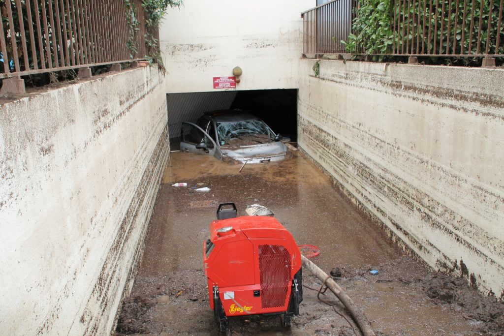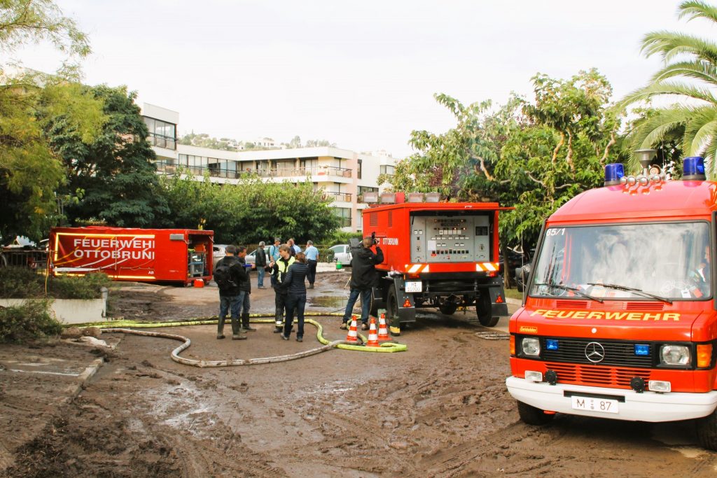 Über 2000 Liter Schmutzwasser je Minute pumpten die Tragkraftspritzen der Ottobrunner Feuerwehr aus den Tiefgaragen heraus.